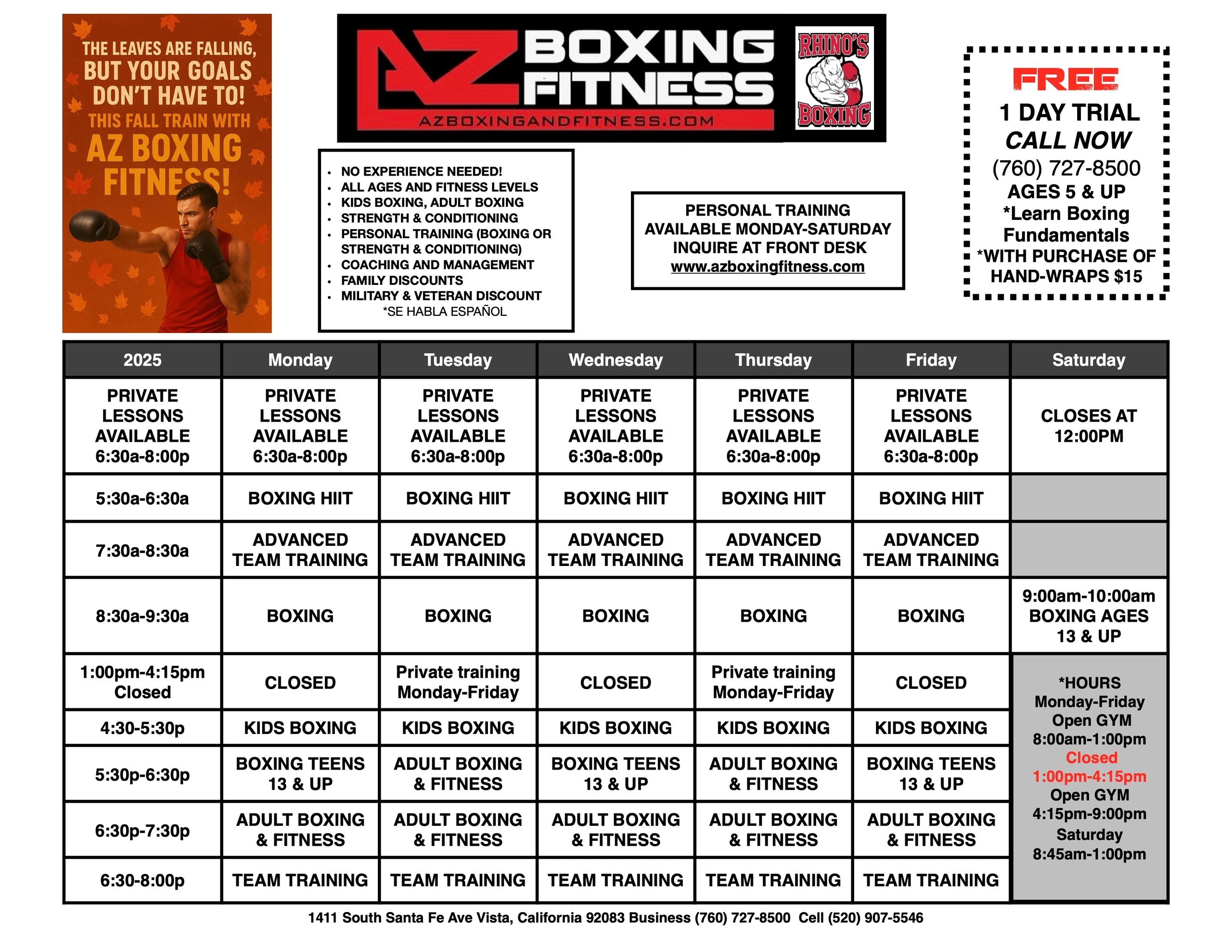 AZ Boxing @Rhino’s Boxing, is dedicated to providing an empowering environment for athletes of all skill levels. Our mission is to promote fitness, discipline, and confidence through the art of boxing.